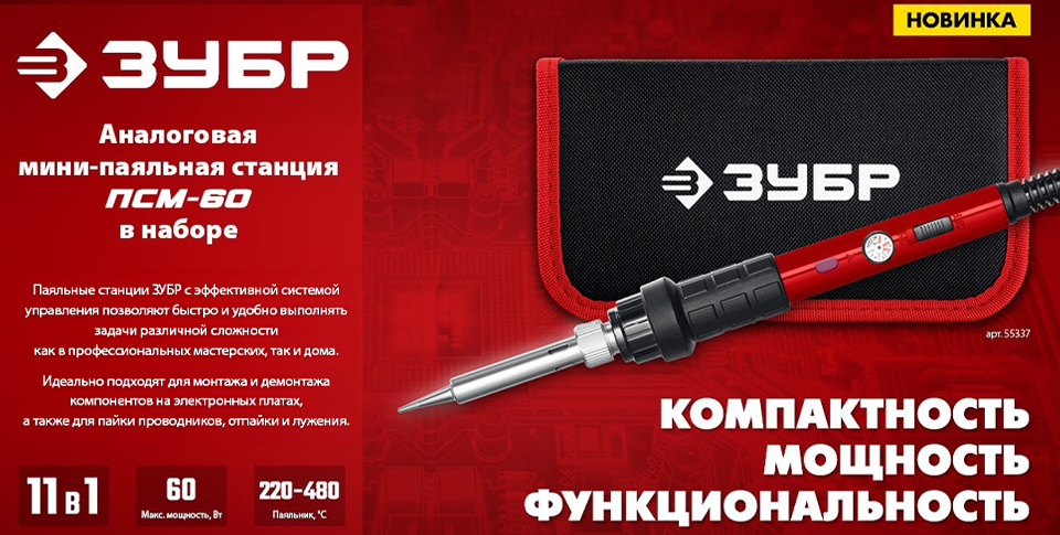 Мини-паяльная станция ПСМ-60 от ЗУБР – это сочетание функциональности и надежности для выполнения сложных и деликатных паяльных работ.