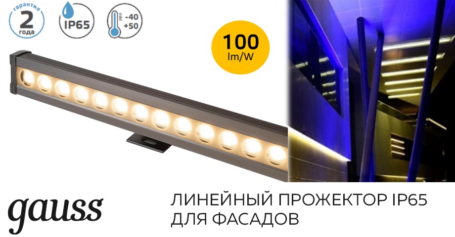 Линейный прожектор IP65 от Gauss: решение для подсветки зданий