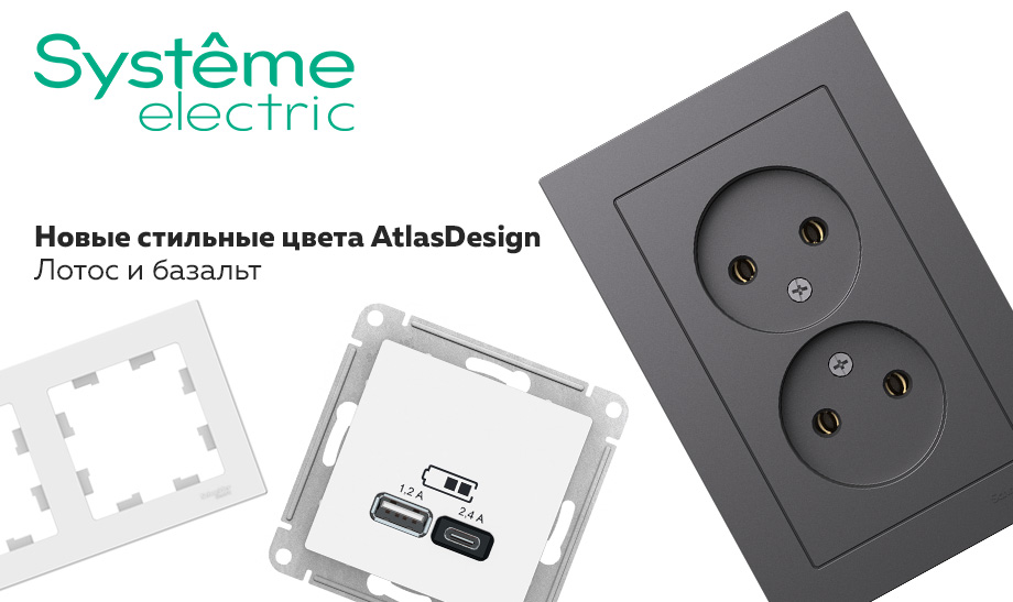 Расширена цветовая гамма электроустановочных изделий серии AtlasDesign от бренда System Electric. Новые цвета лотос и базальт привнесут свежесть и элегантность в ваш дом, офис или дачу. Они прекрасно сочетаются с любым интерьерным стилем.