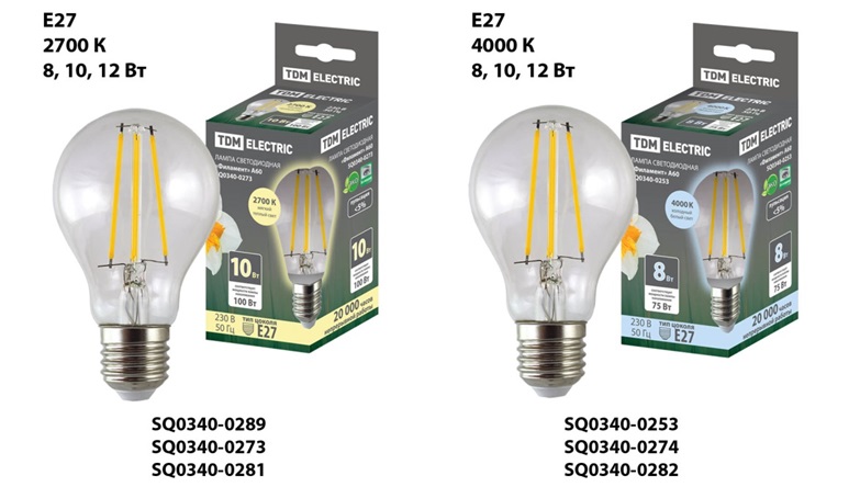 Светодиодные лампы Филамент A60 от TDM ELECTRIC