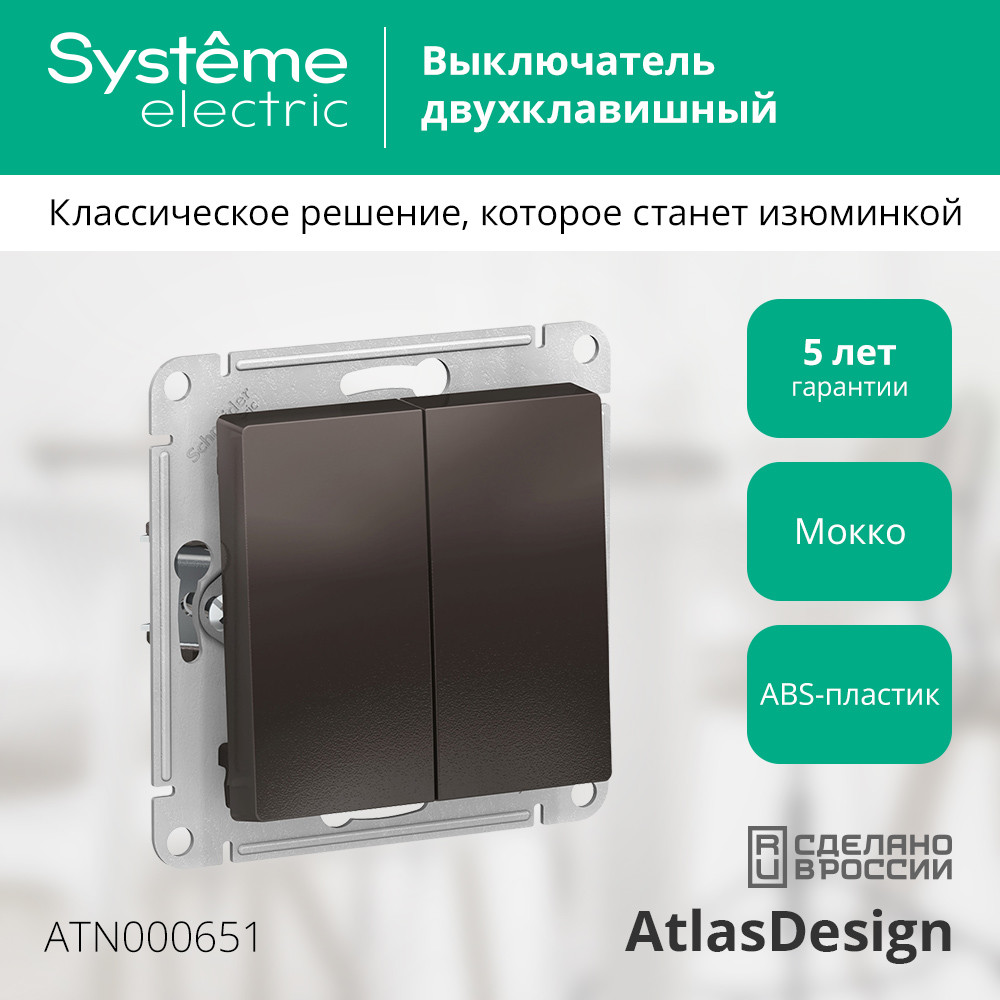 ATLASDESIGN 2-клавишный ВЫКЛЮЧАТЕЛЬ, сх.5, 10АХ, механизм, МОККО |