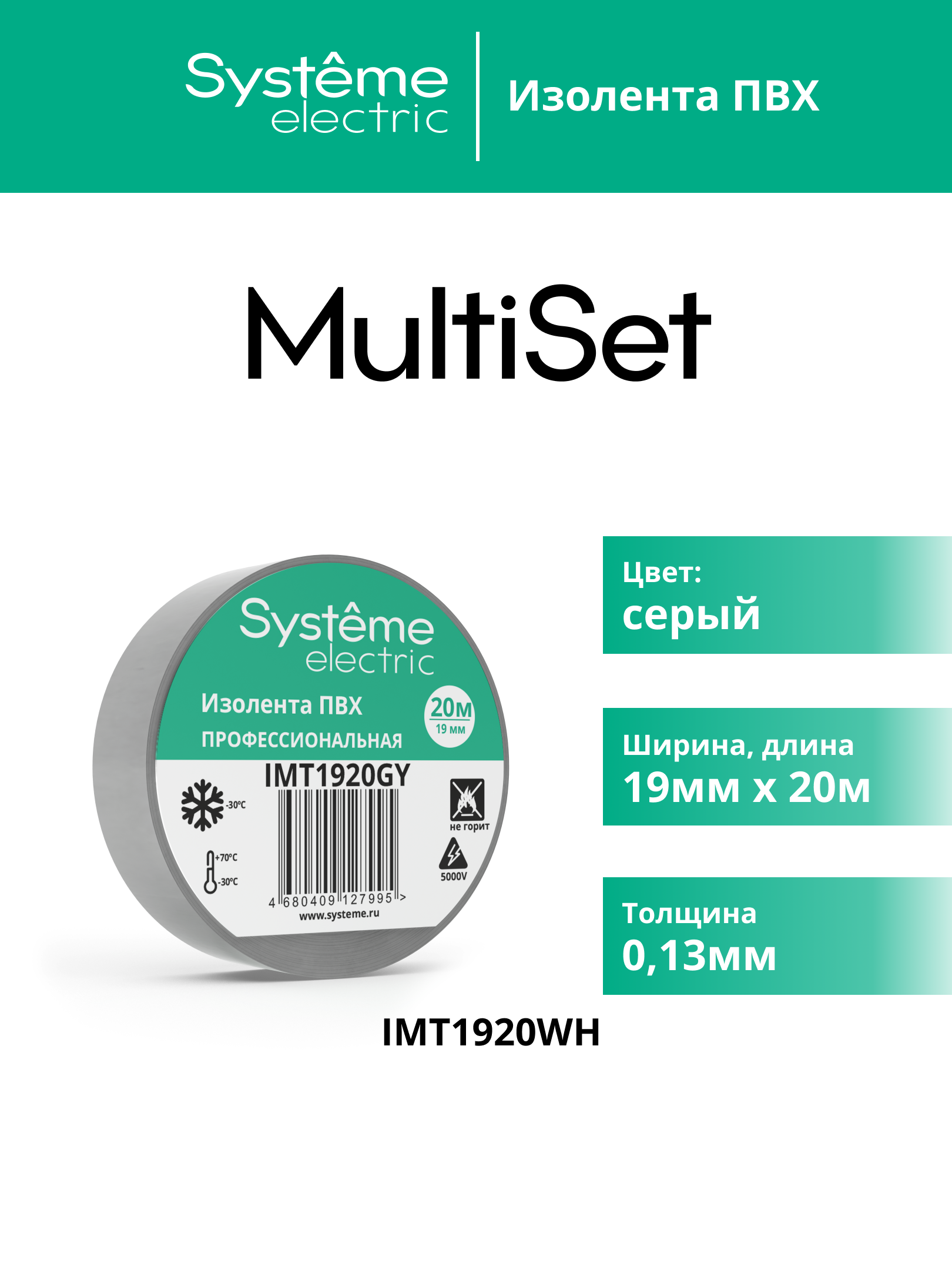 MULTISET Изолента ПВХ 19 мм Х 20 м, толщина - 0.13 мм, СЕРАЯ |