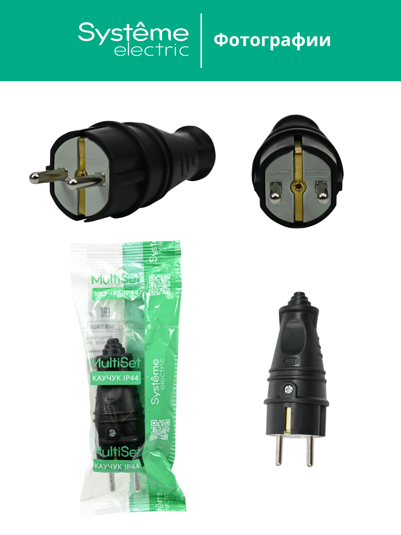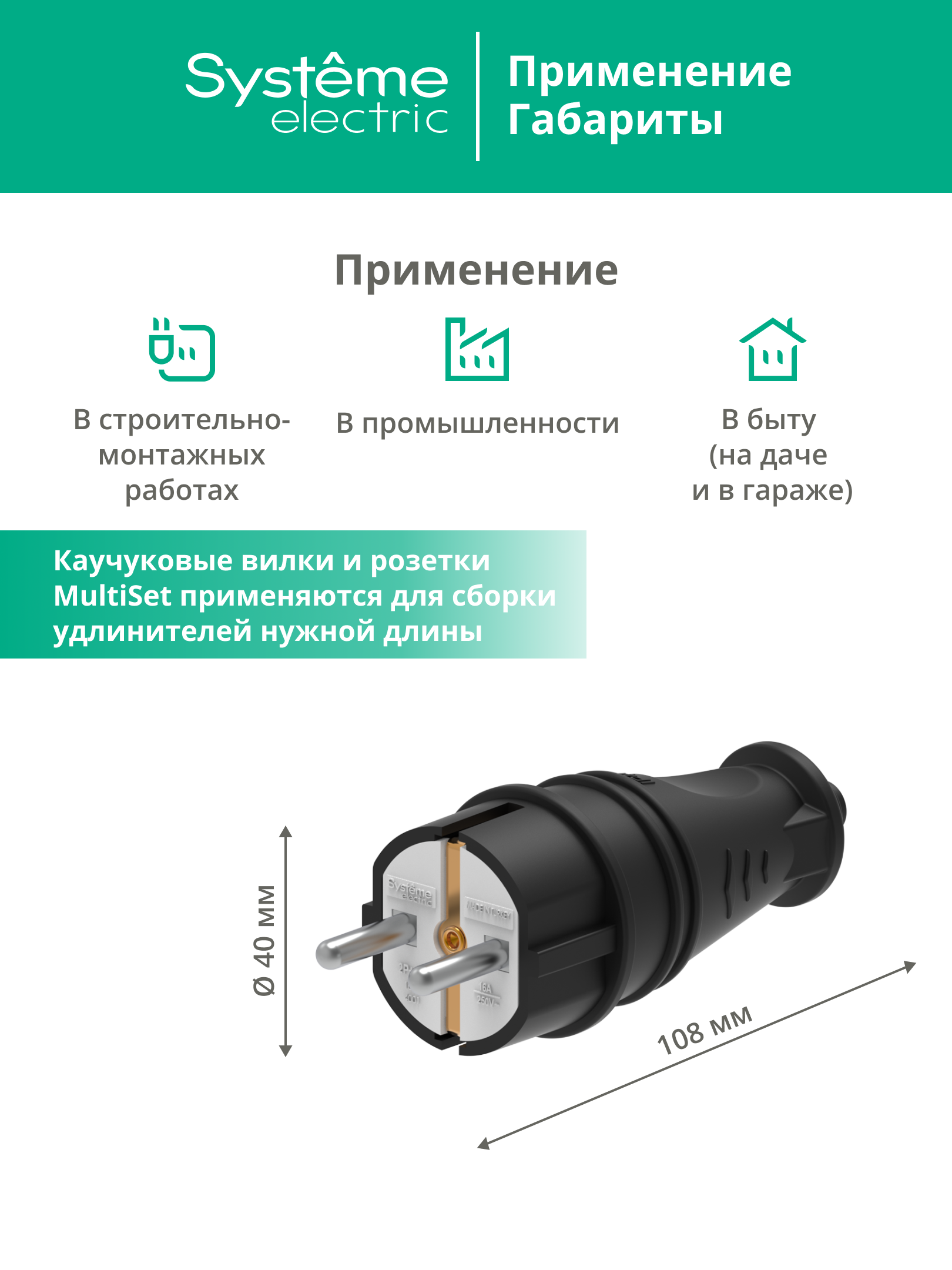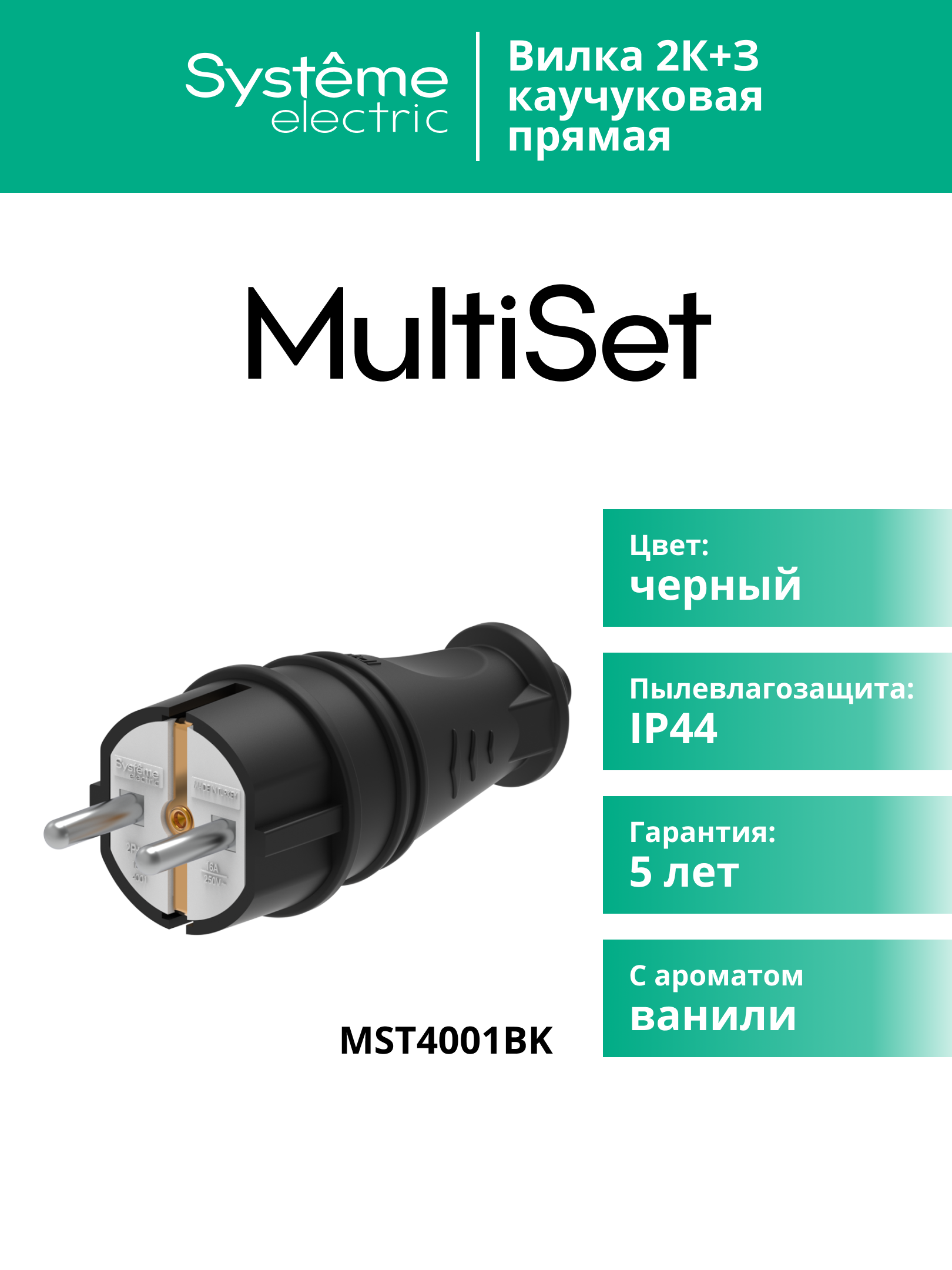 MULTISET Вилка 2К+З прямая каучуковая 16 А/250 В IP44 ЧЁРНАЯ |