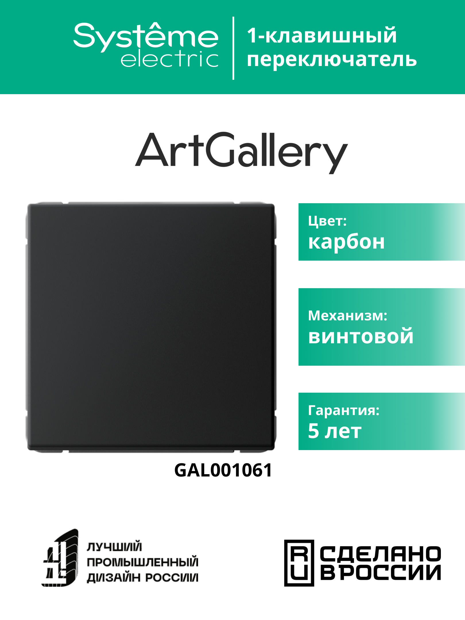 ARTGALLERY 1-клавишный ПЕРЕКЛЮЧАТЕЛЬ, сх.6, 10АХ, механизм, КАРБОН |
