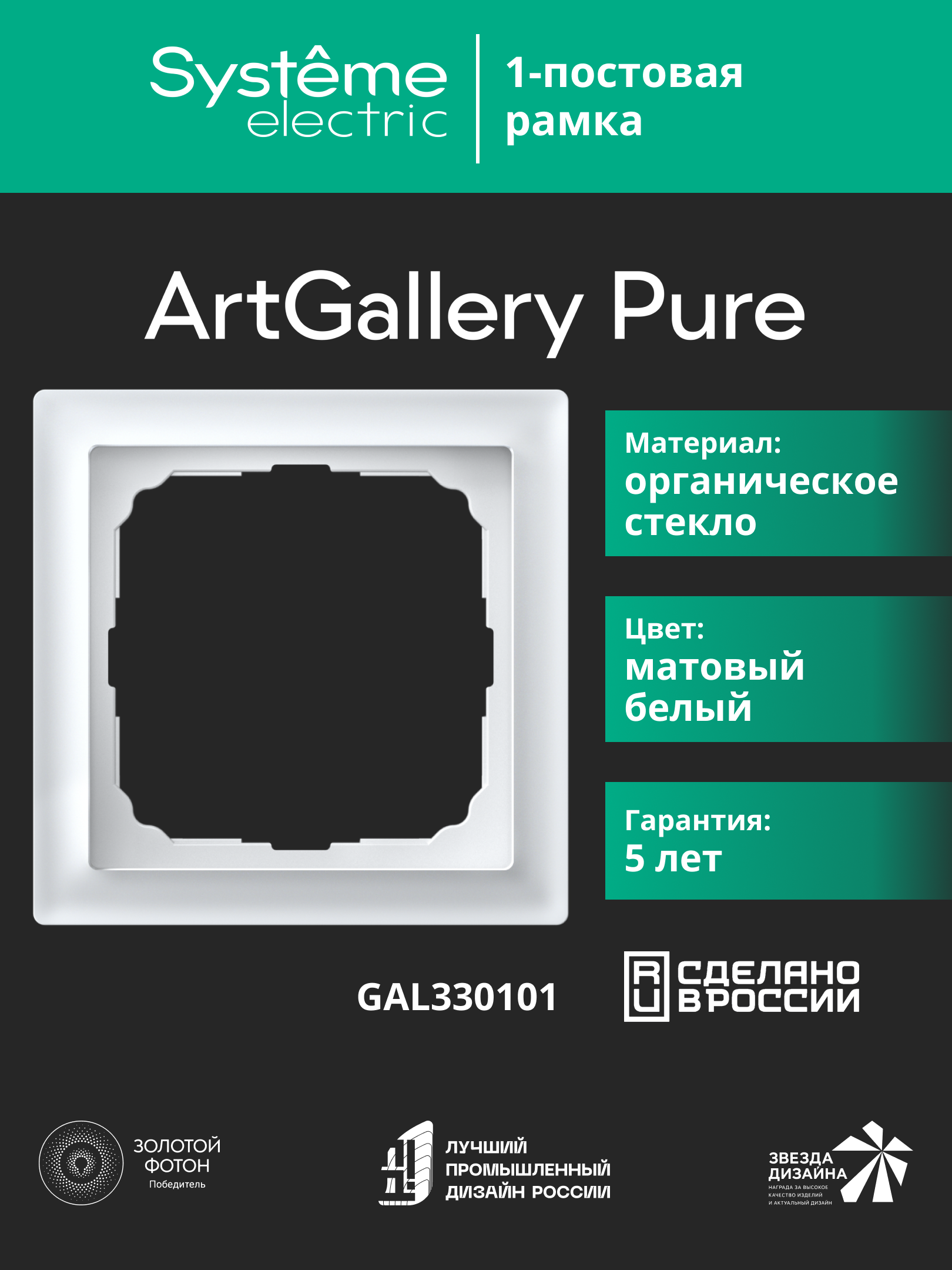 ARTGALLERY PURE 1-постовая РАМКА, МАТОВОЕ ОРГАНИЧЕСКОЕ СТЕКЛО БЕЛЫЙ |