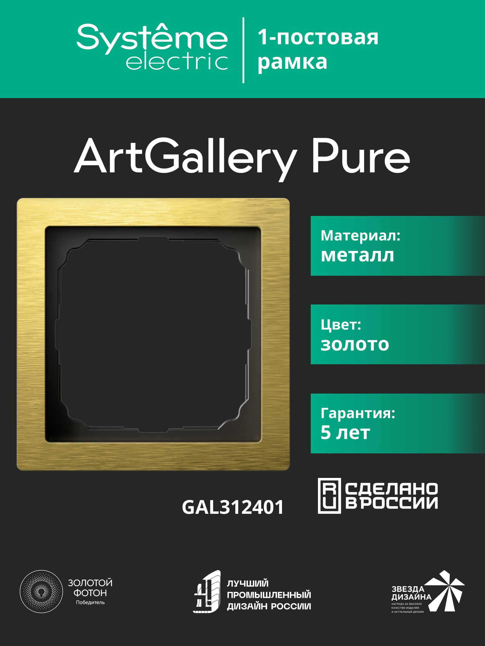 ARTGALLERY PURE 1-постовая РАМКА, МЕТАЛЛ ЗОЛОТО |