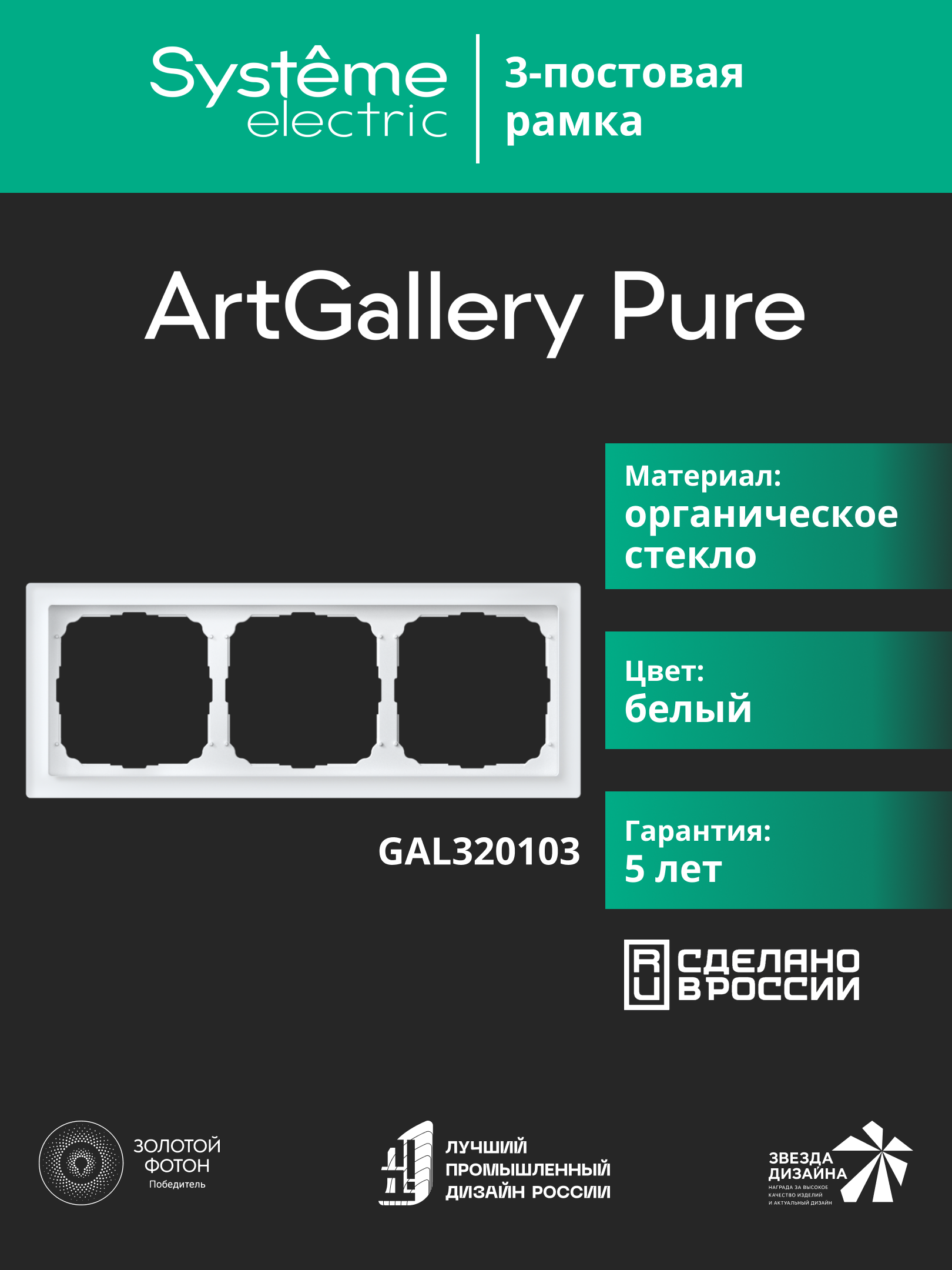 ARTGALLERY PURE 3-постовая РАМКА, ОРГАНИЧЕСКОЕ СТЕКЛО БЕЛЫЙ |