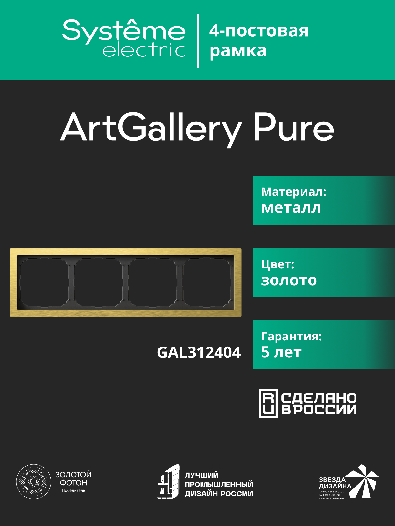 ARTGALLERY PURE 4-постовая РАМКА, МЕТАЛЛ ЗОЛОТО |
