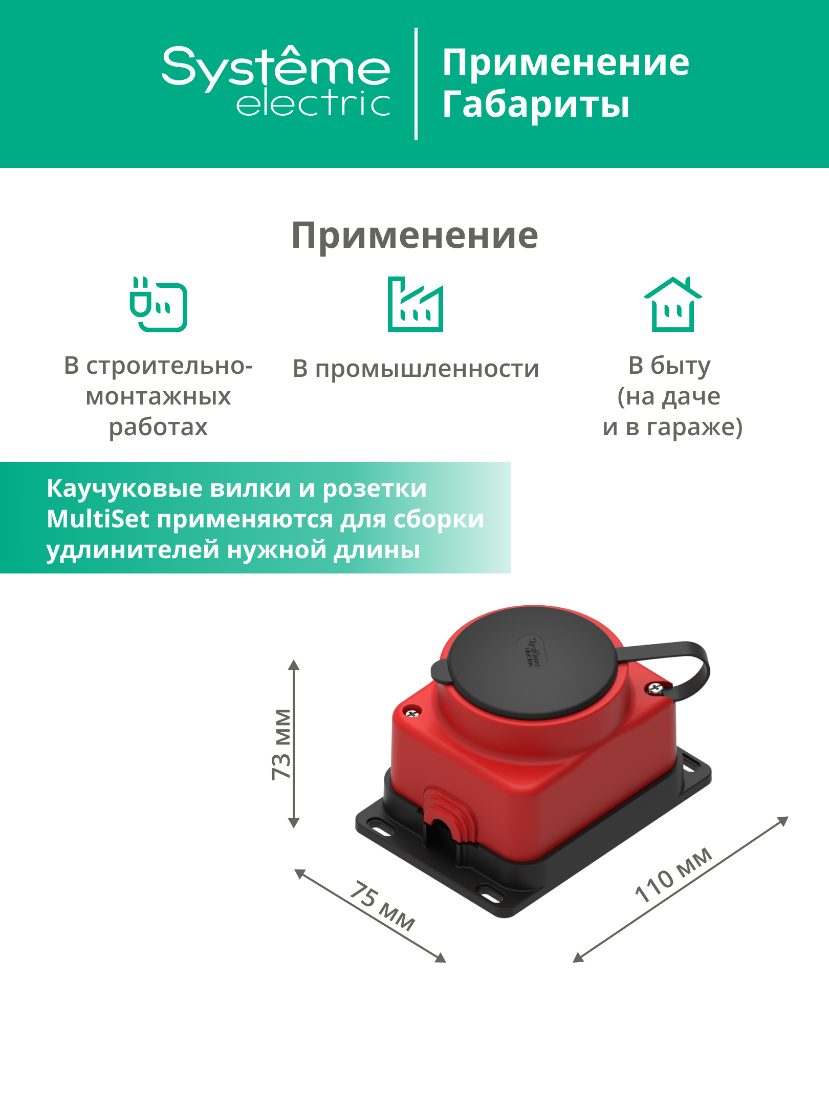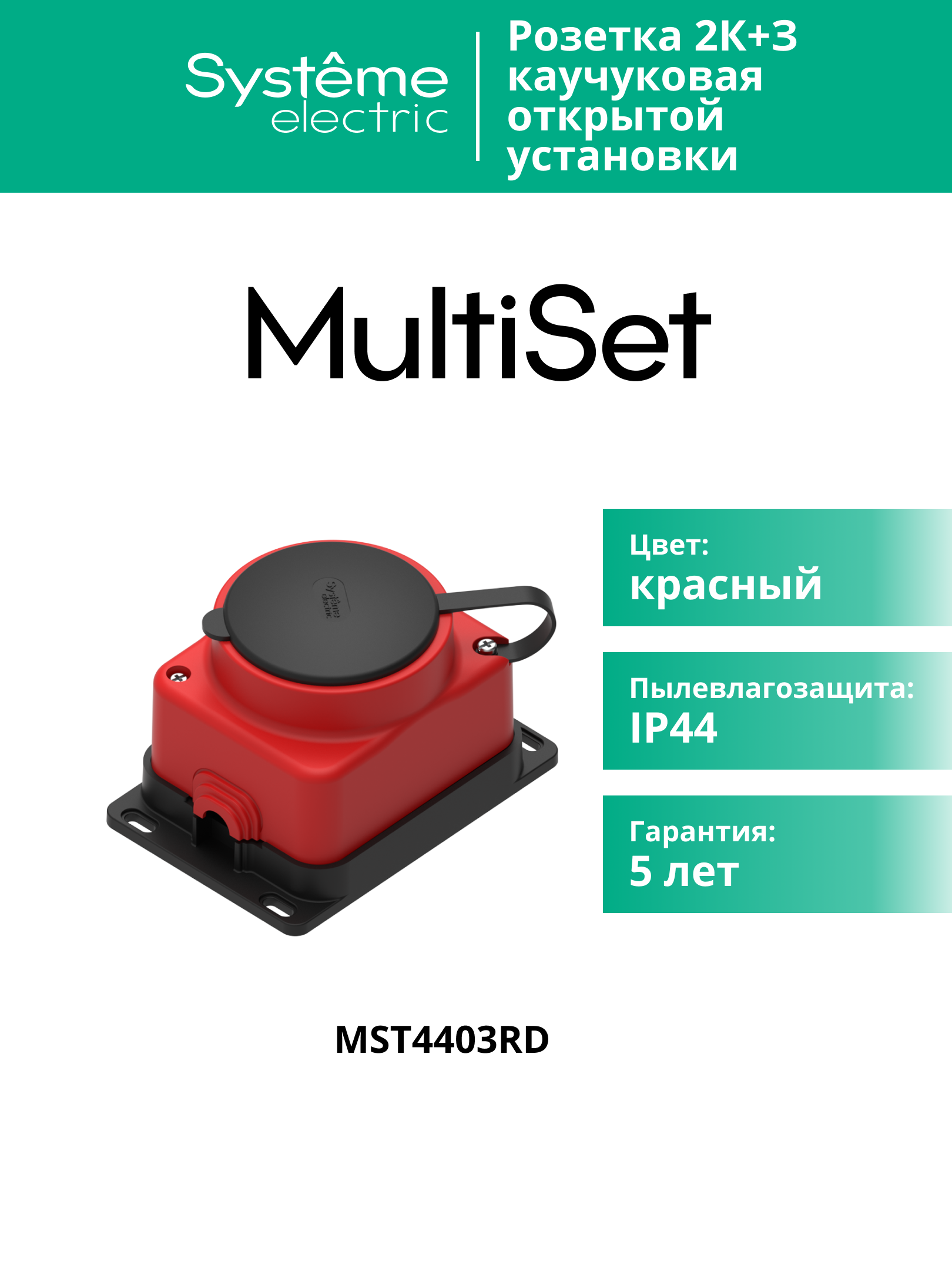 MULTISET Розетка 2К+З открытой установки каучуковая 16 А/250 В IP44 КРАСНАЯ |