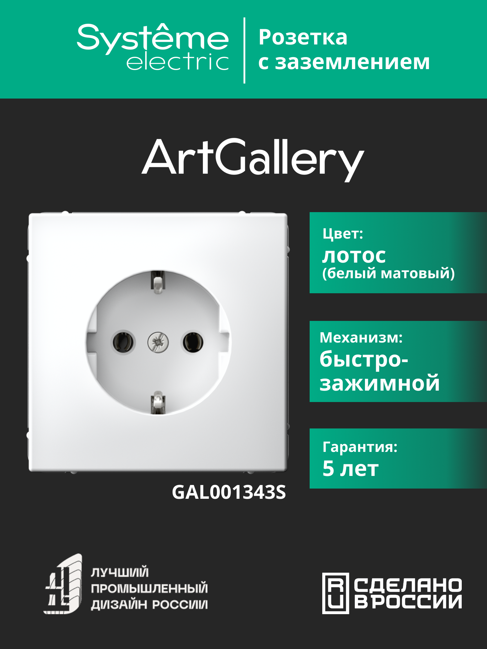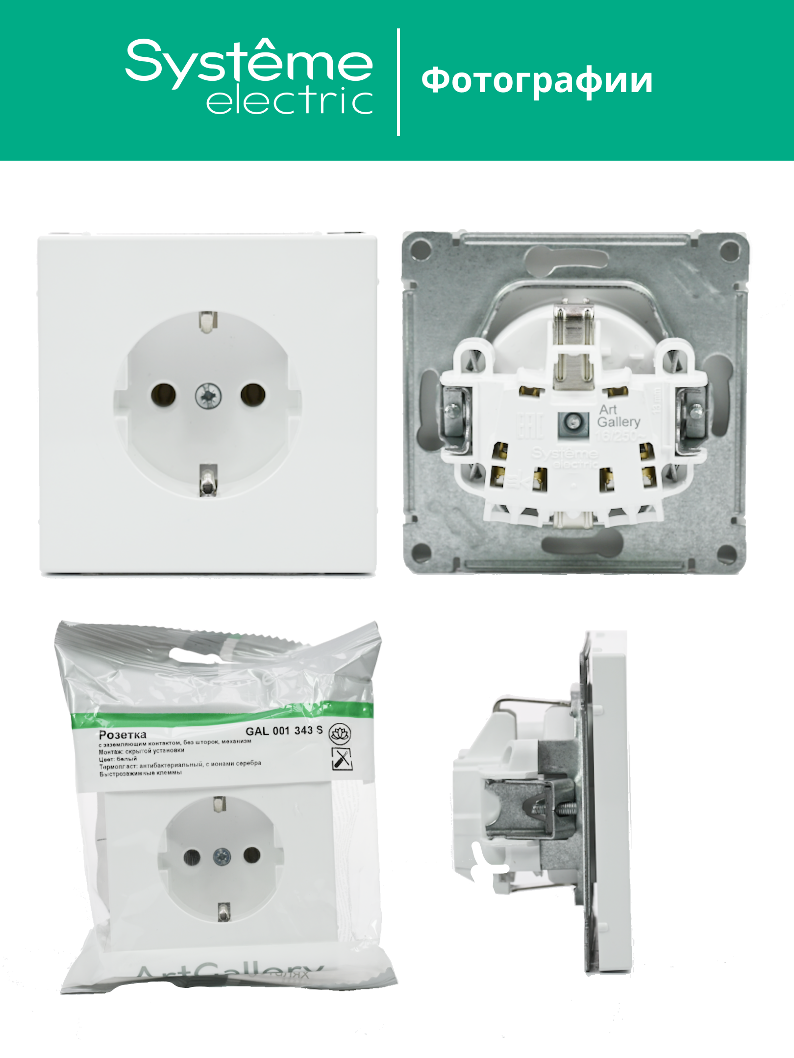 ARTGALLERY РОЗЕТКА с заземлением, 16А, механизм, быстрозажим. клем., ЛОТОС |