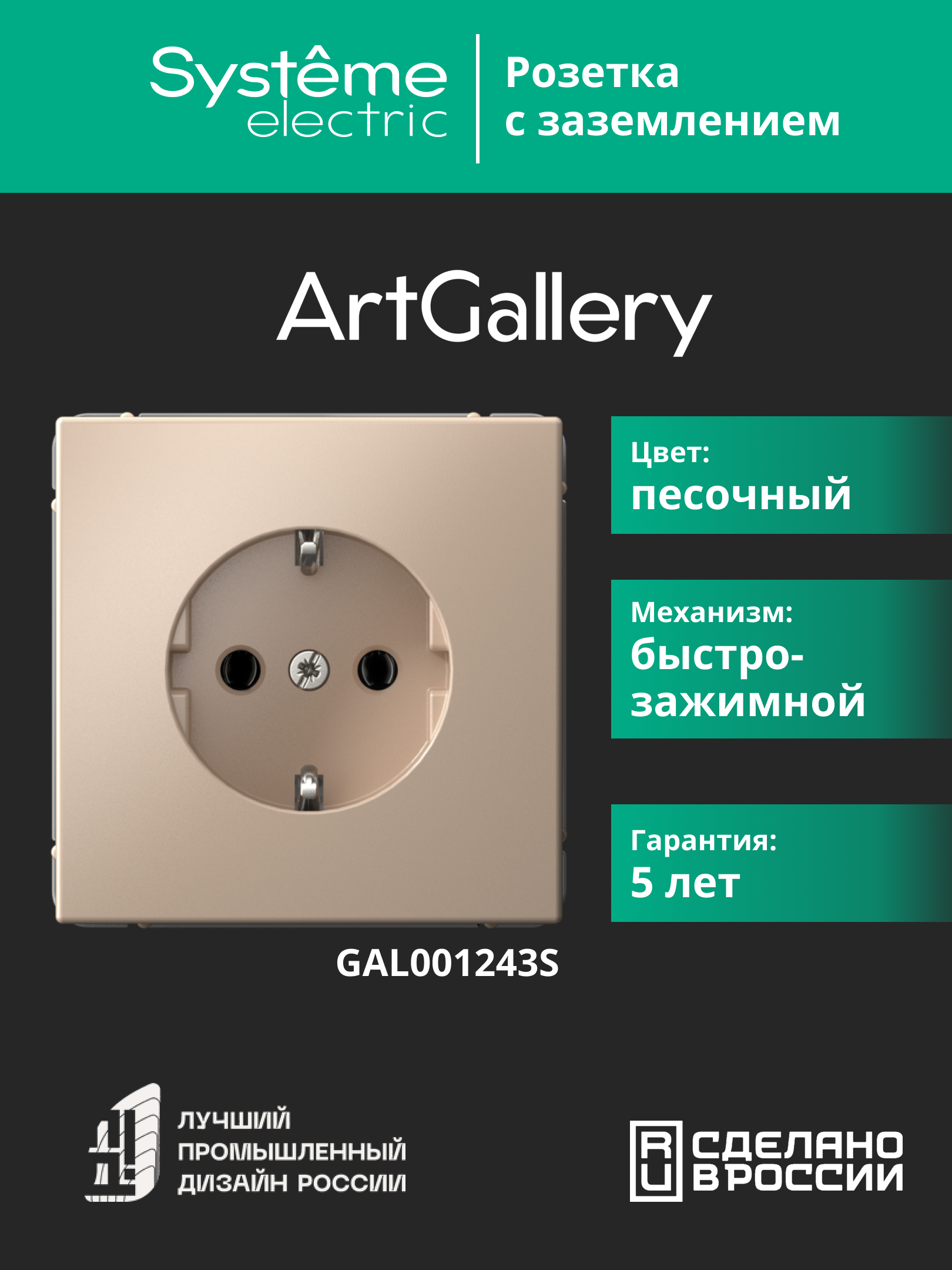 ARTGALLERY РОЗЕТКА с заземлением, 16А, механизм, быстрозажим. клем., ПЕСОЧНЫЙ |
