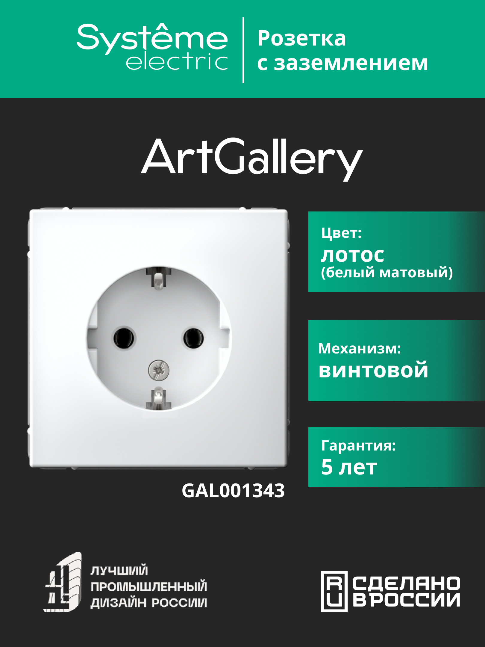 ARTGALLERY РОЗЕТКА с заземлением, 16А, механизм, ЛОТОС |