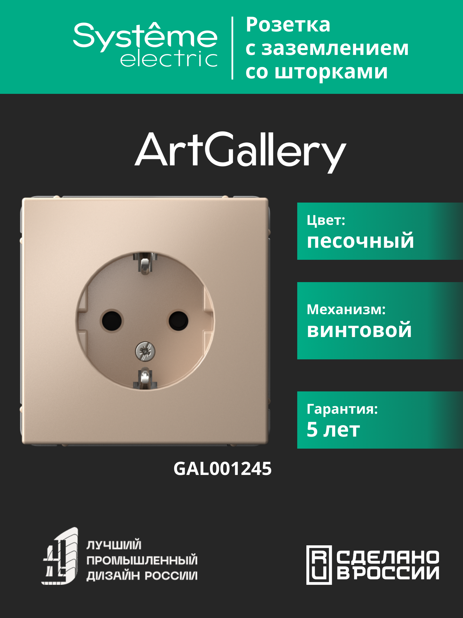 ARTGALLERY РОЗЕТКА с заземлением со шторками, 16А, механизм, ПЕСОЧНЫЙ |