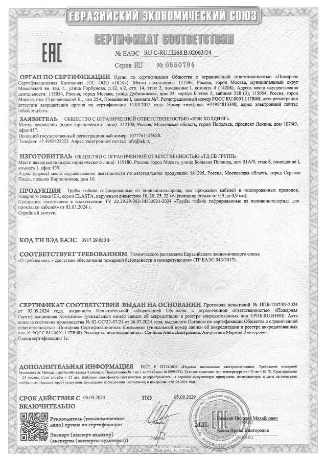 | Наименование | ELASTA Труба гофр. ПВХ d=25мм с зондом (10м) IEK |