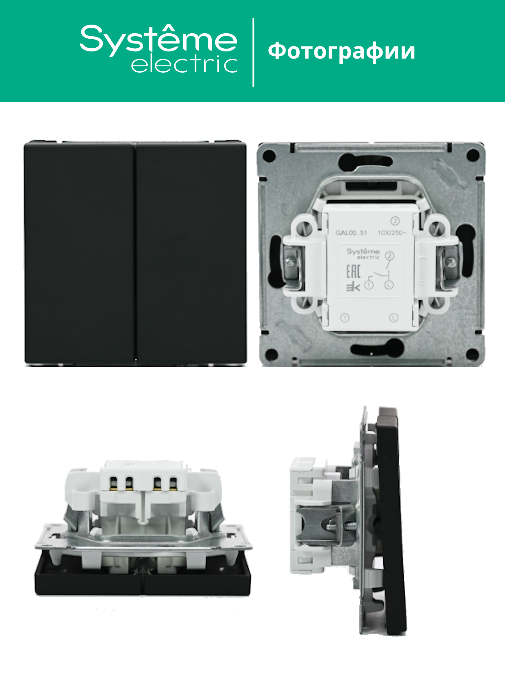 ARTGALLERY 2-клавишный ВЫКЛЮЧАТЕЛЬ, сх.5, 10АХ, механизм, КАРБОН |